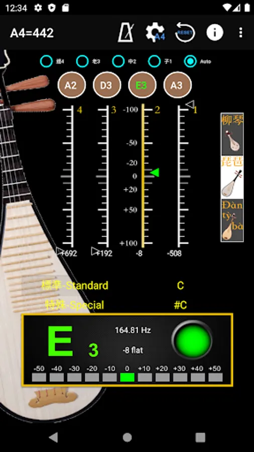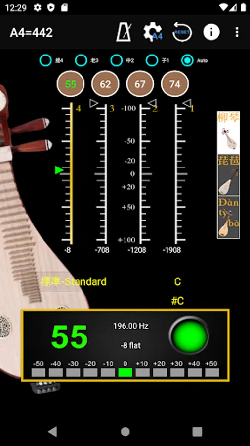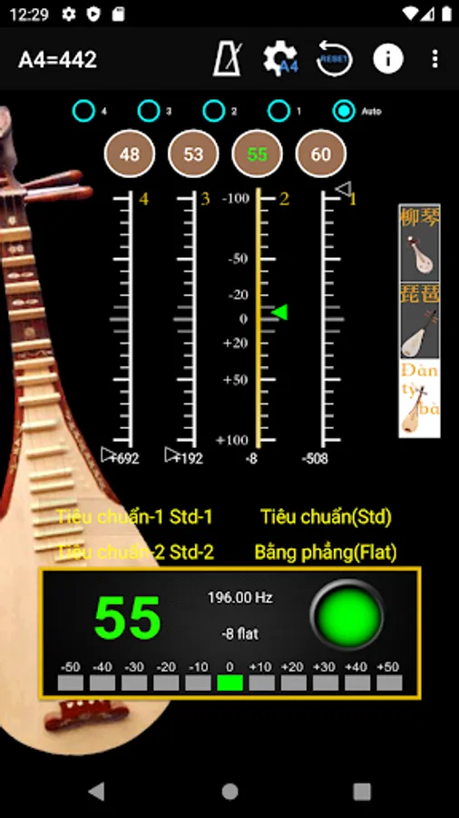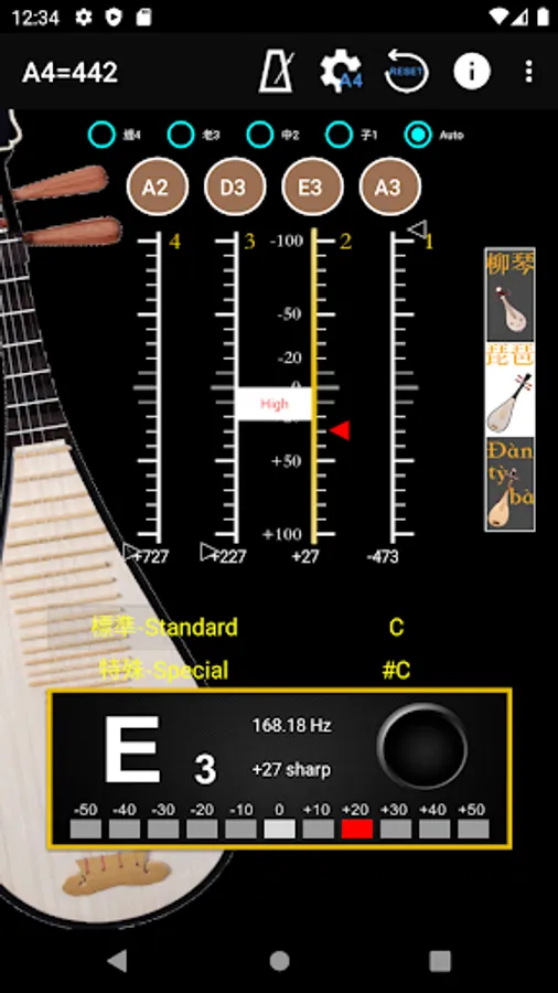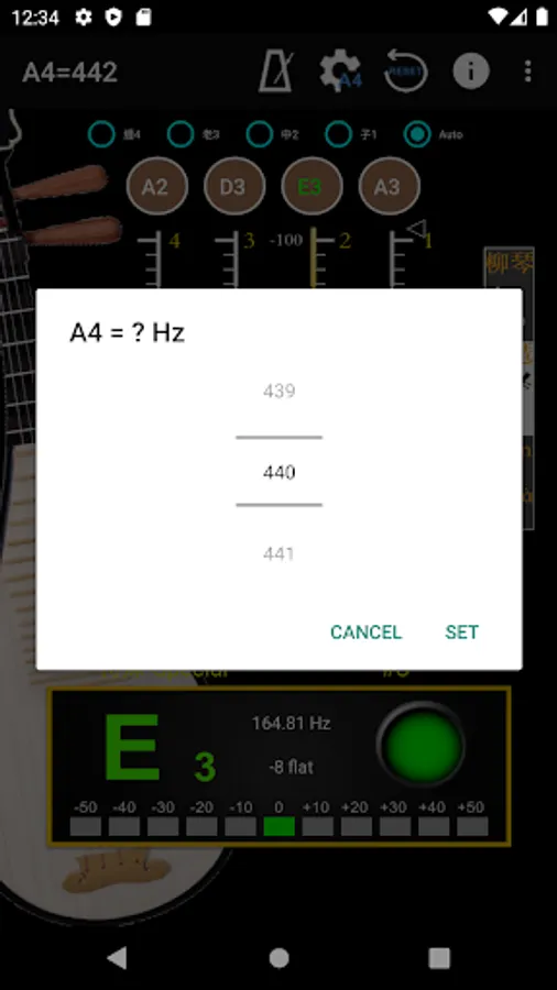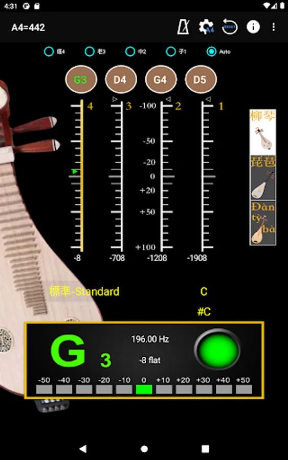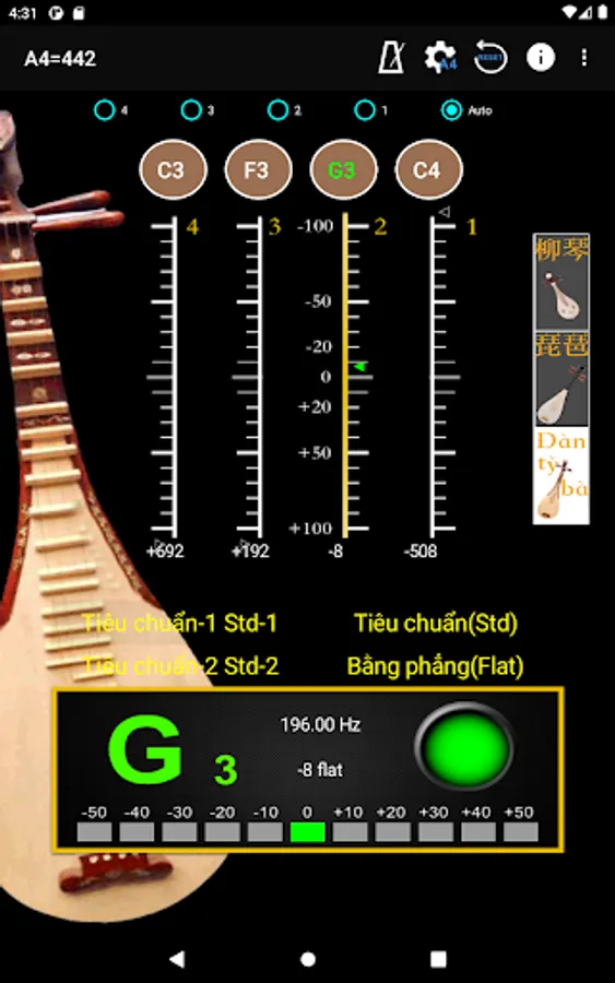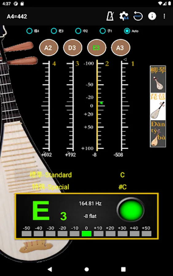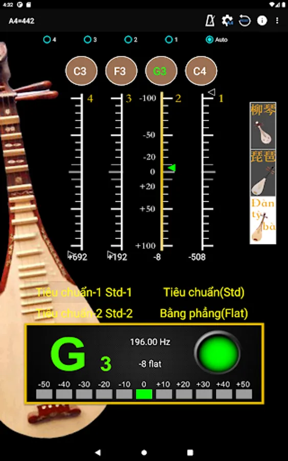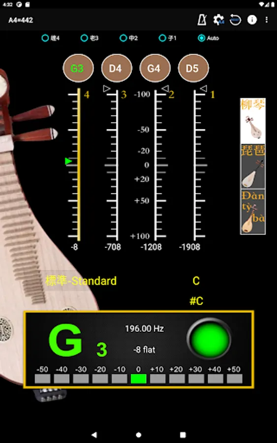 - A4 Frequency adjustment: choose 428~452 frequencies for A4 string.