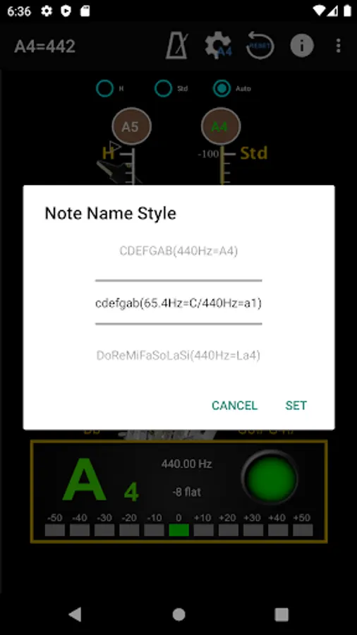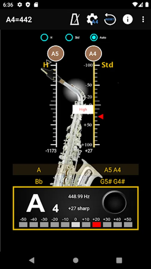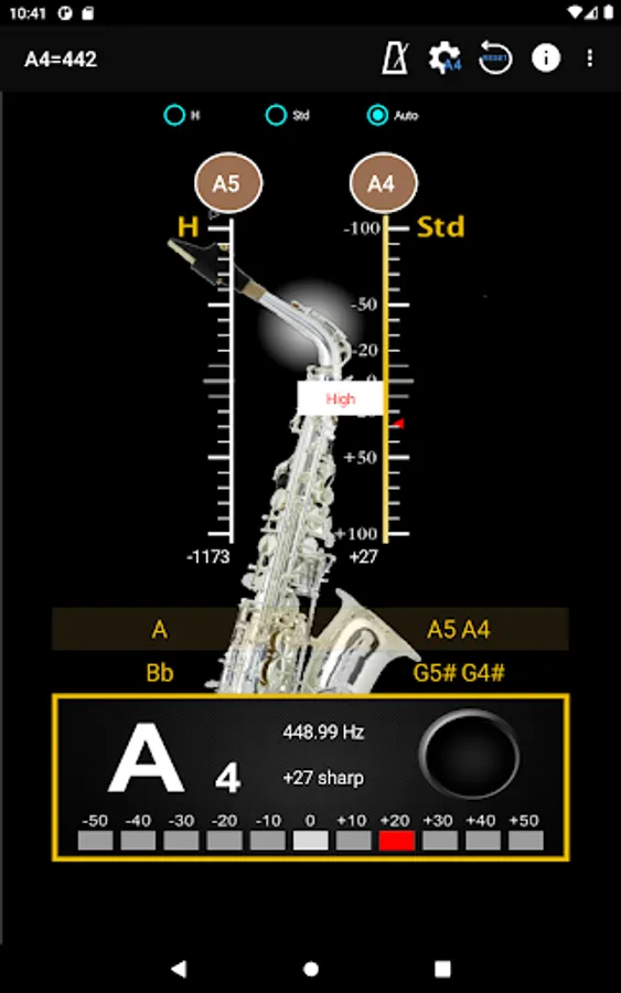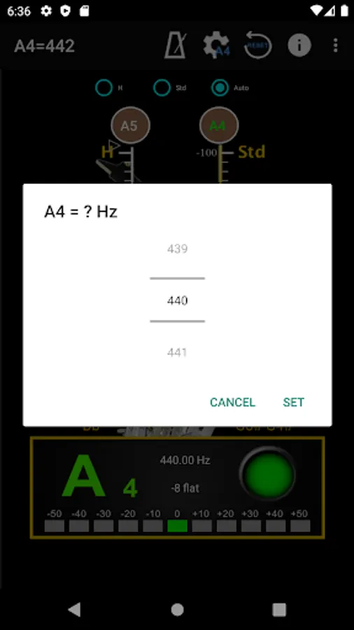 - A4 Frequency adjustment: choose 428~452 frequencies for A4 string.