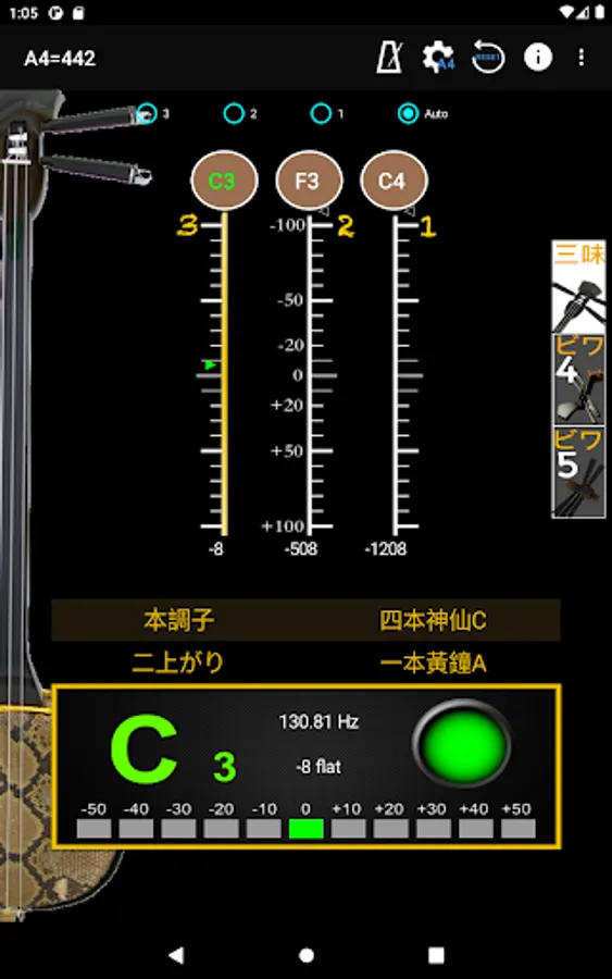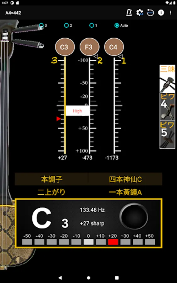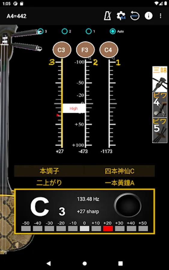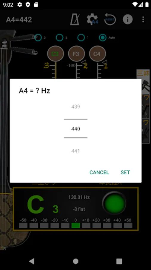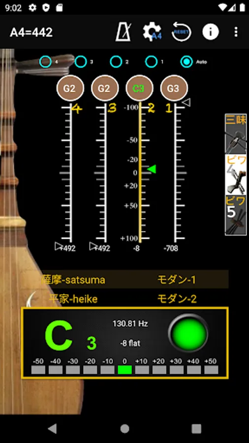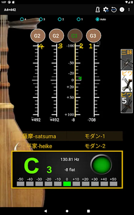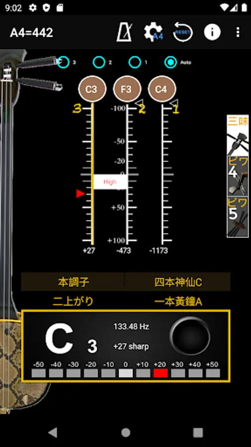 - A4 Frequency adjustment: choose 428~452 frequencies for A4 string.