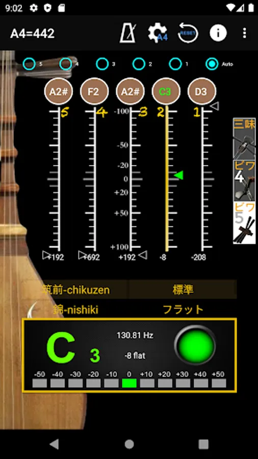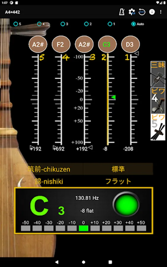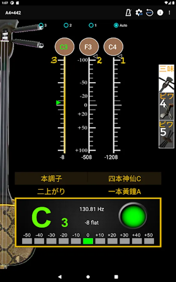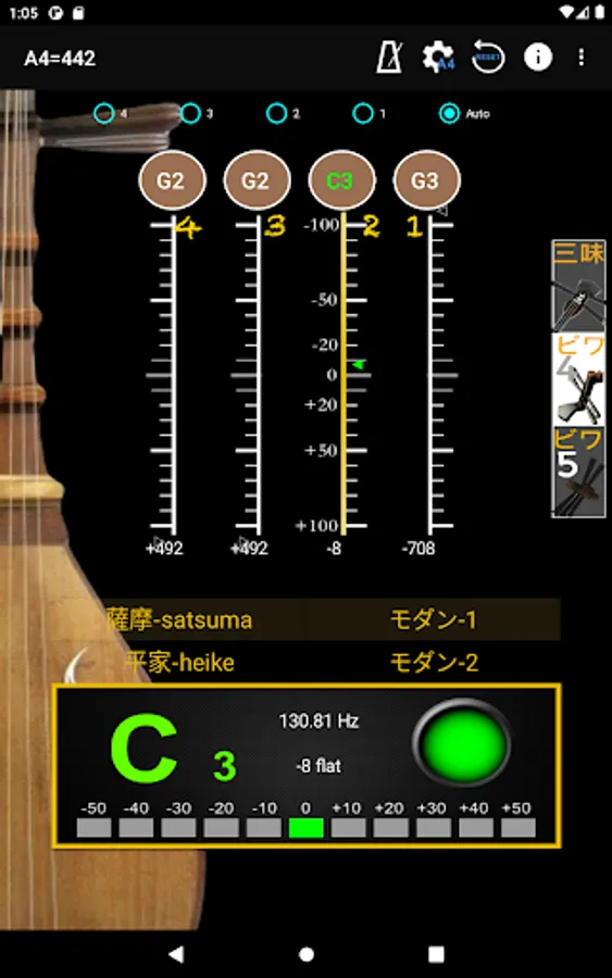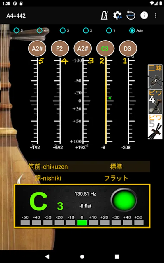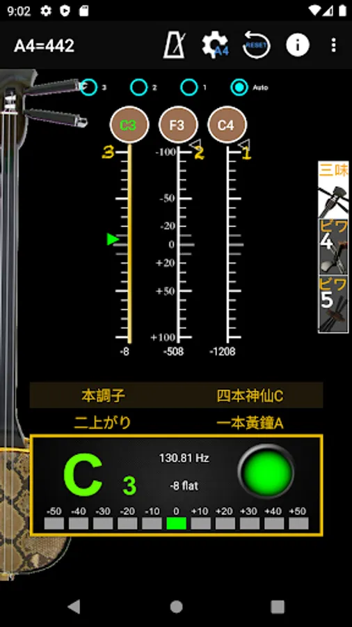 - A4 Frequency adjustment: choose 428~452 frequencies for A4 string.