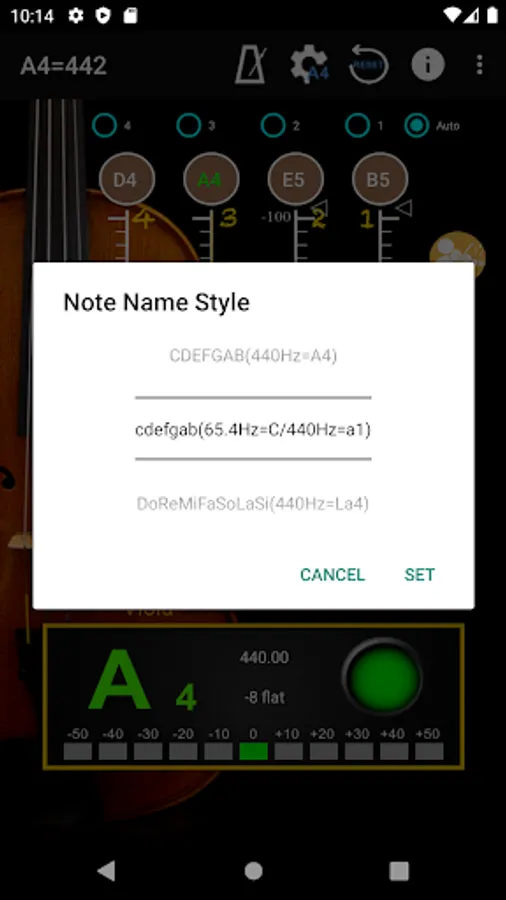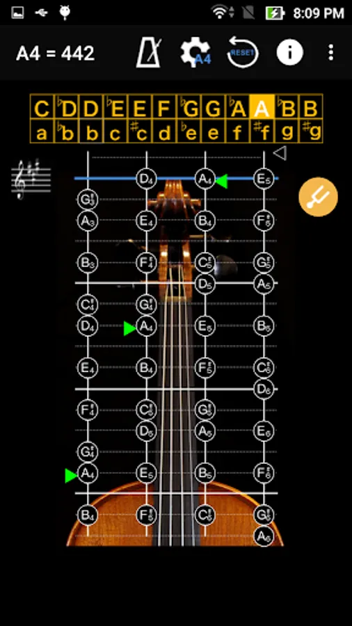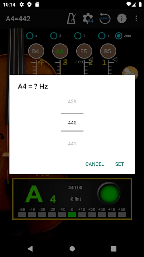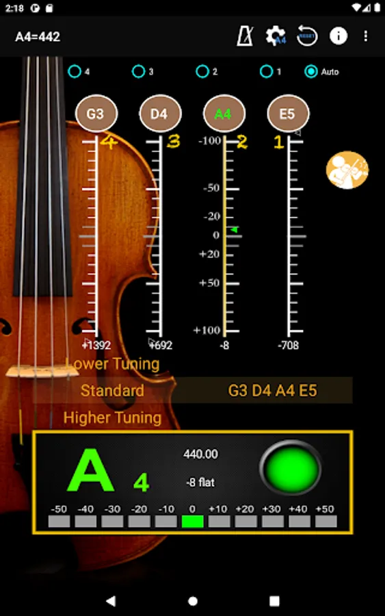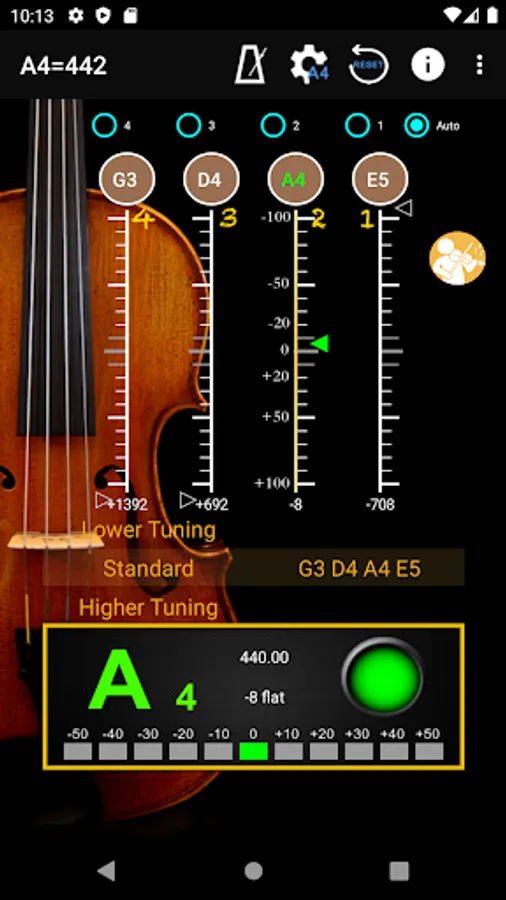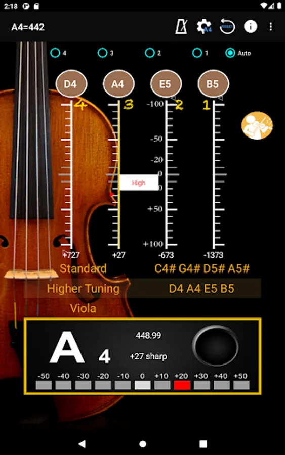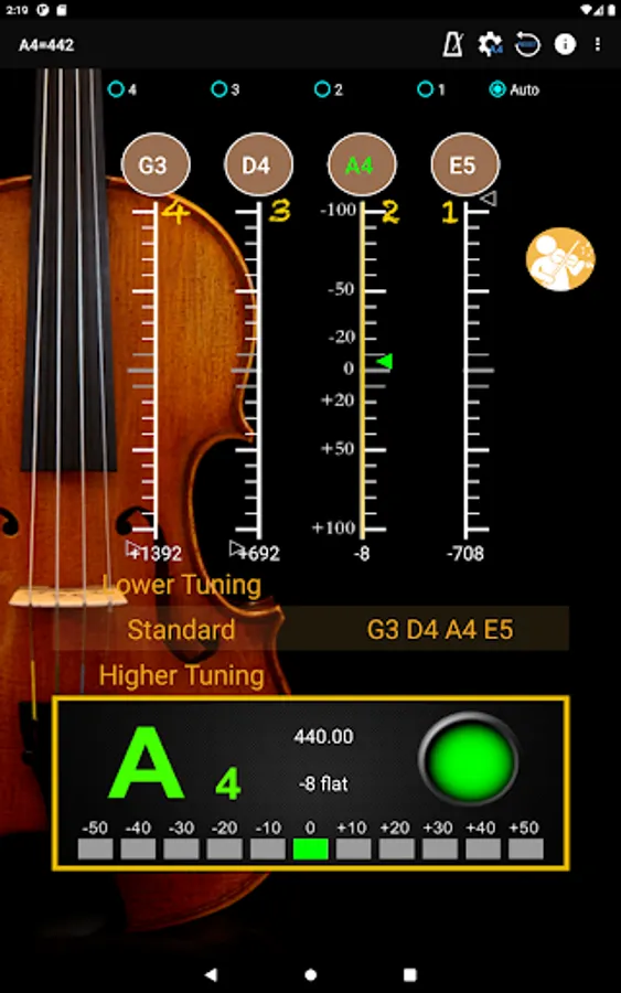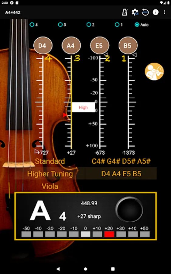 - A4 Frequency adjustment: choose 428~452 frequencies for A4 string.