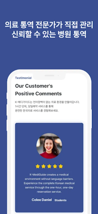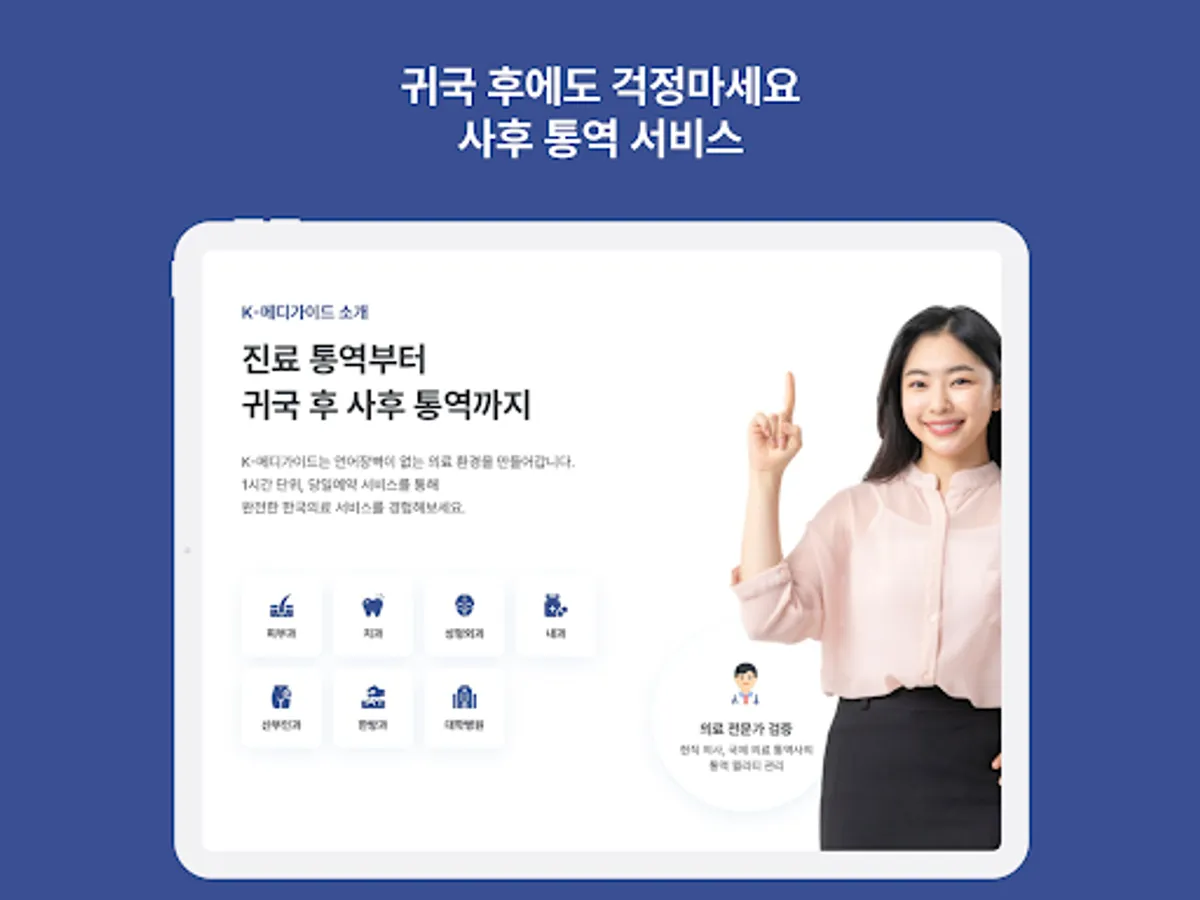 At K Mediguide, same-day reservations and 1-hour interpreting services are available.
