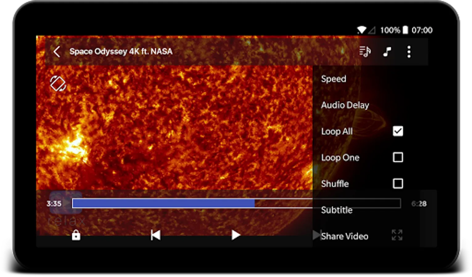 • Multi playback option: auto-rotation, aspect-ratio, screen-lock etc.