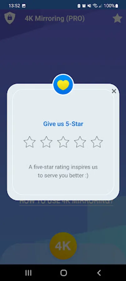 4K Mirroring will assist you to scan and mirror your android phone or tab's screen on smart TV/Display ( miracast enabled ) or Wireless dongles or adapters and will get a great big screen phone experience by connecting your phone to a TV screen via This Cast To TV app and easily stream movies from phone to your big TV screen!