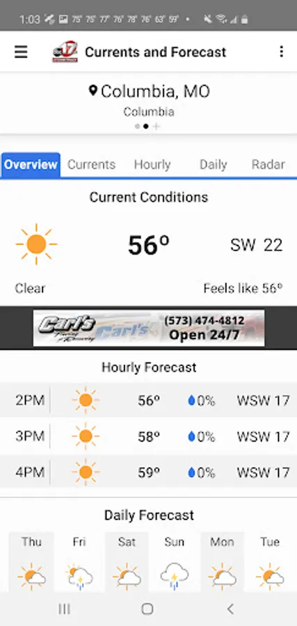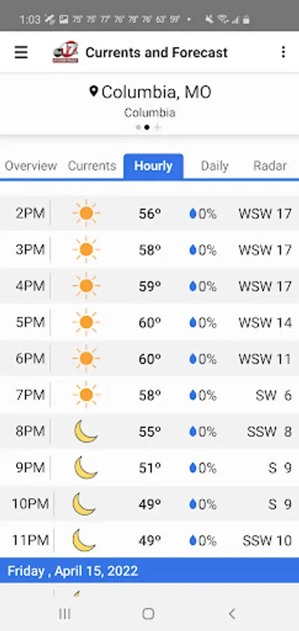 The KMIZ Mobile Weather App includes: