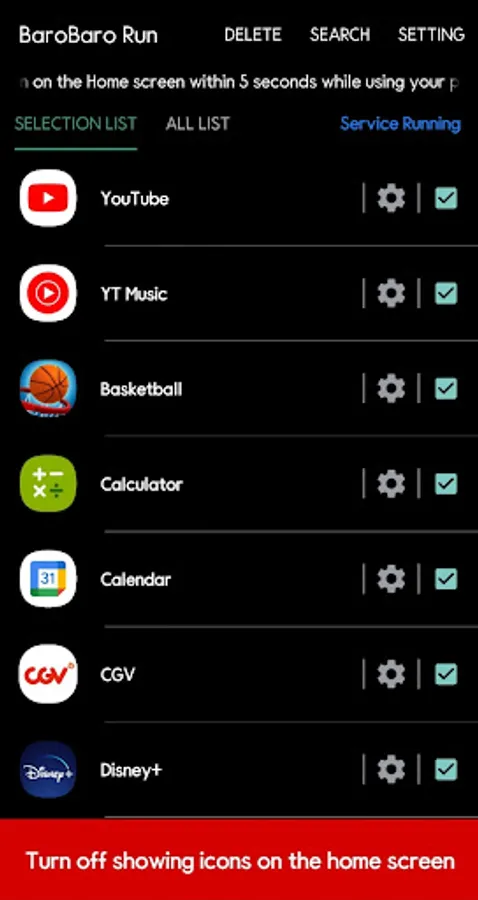 If you register too many apps on the home screen, it will be inconvenient to use your phone. Hide for a while with the hide icon and let it appear again.