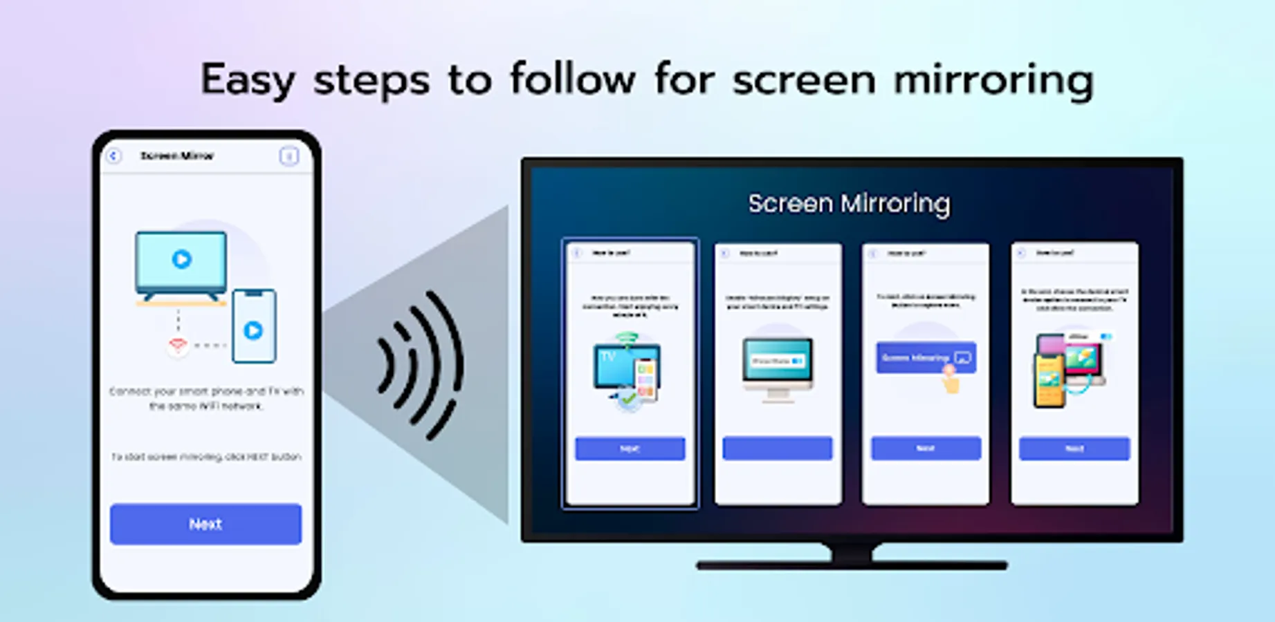 Download this app from the Play Store and click “Start” to connect your smartphone and Smart TV to the same Wi-Fi network. With the app, you can mirror your phone’s screen to your TV, compatible with many TV brands, such as Sony Bravia TVs, without any extra streaming devices or cables.