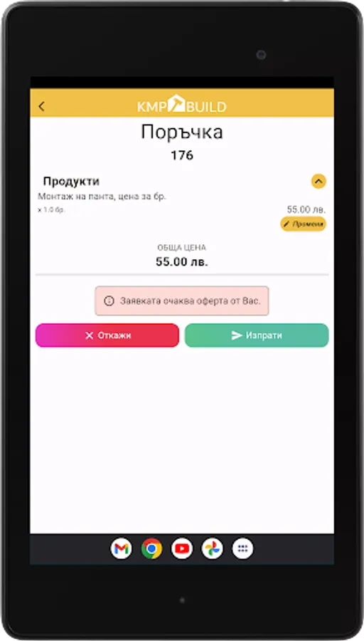 KMP Build Employee is an app that brings builders together with customers and allows them to do repairs for a fee.