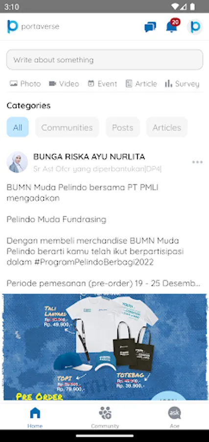 Presented as a multifunctional application, Portaverse is now available on the mobile platform. As a Software as a Service (SaaS), Portaverse provides features for Pelindo partners to actually handle, manage, and realize knowledge. Strategically, the Portaverse application will support Knowledge Management System, Training Management (Learning Management System), and Talent Management System.