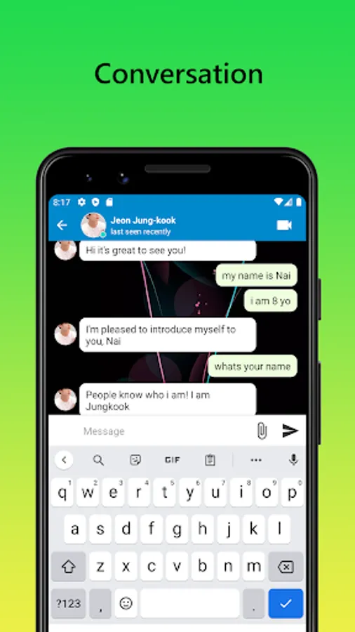 This is an imitation of the correspondence with Jungkook Btz. Do you want to show your friends and family that you had a video call or chat with the funny Jungkook Btz himself? Download and try it now!