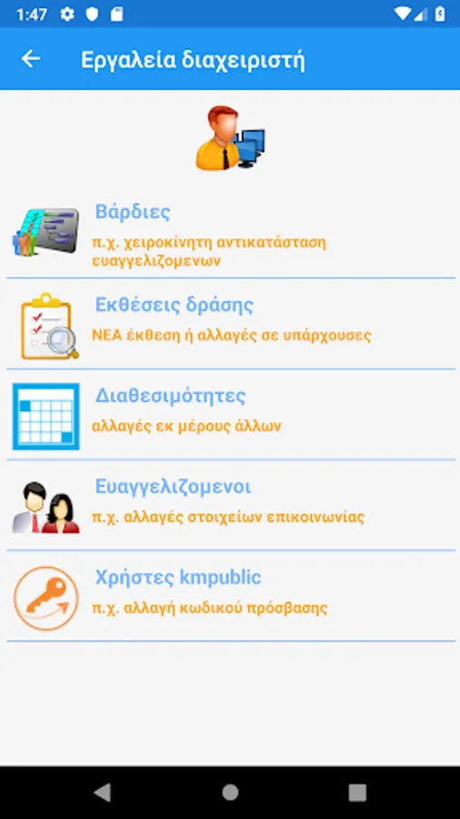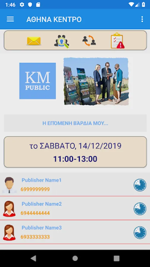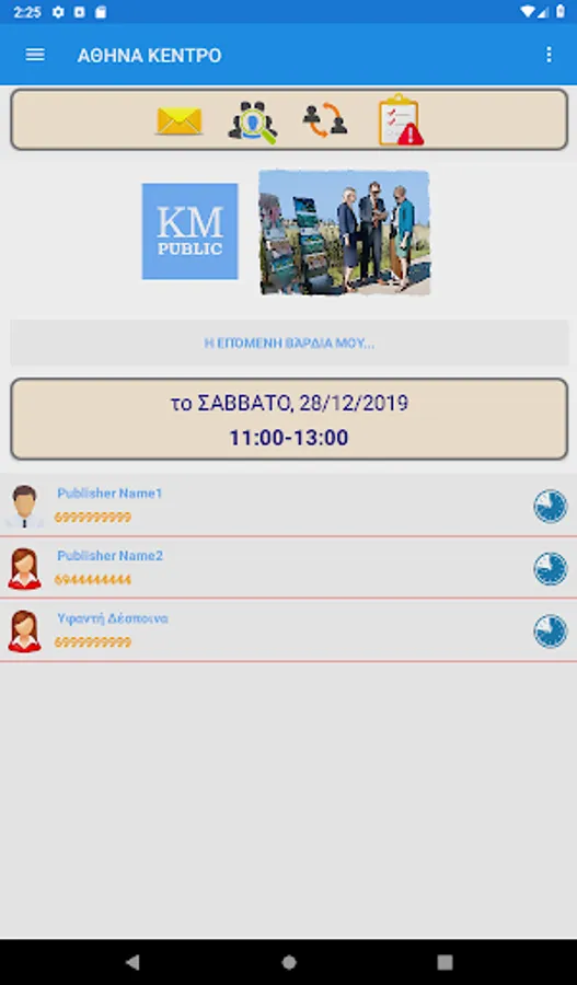This application is the mobile & mobile version of www.kmpublic.com. Please note that it is not an official application nor is it supported by JW.ORG. Built on a voluntary basis and offered for free. You don't have to make a contribution. The purpose of the application is to organize and facilitate those involved in public testimony stands. While we do our best for accuracy & security, we ask for your understanding of possible errors or omissions. Please do not hesitate to contact us for any suggestions or comments you have!