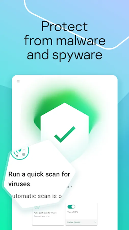 When our defense technologies detect malware, spyware or other threats, Kaspersky Security & VPN for Android acts as a virus cleaner. This means it repels viruses, and blocks dangerous apps, links, downloads and files.