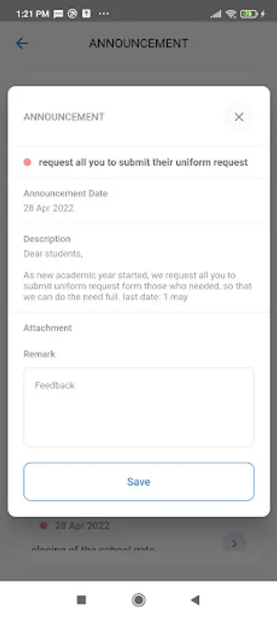 Easy announcement platform to reduce communication GAP between parents, teachers and staffs.