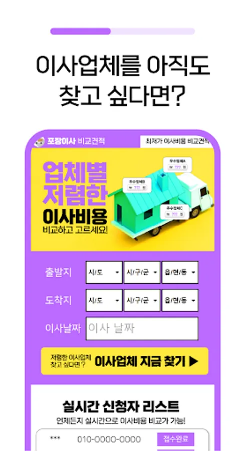 Packing Moving Estimate Comparison App - Home packing moving professional company price cost application provides a real-time comparison service for packing moving of nearby moving centers.