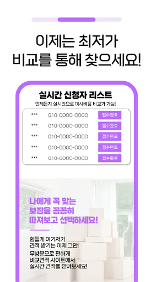 I recommend using this application to those who have been wondering which of the numerous moving centers and packing moving companies to use, those who have been wondering if the price I found is appropriate, and those who thought that all packing and moving companies are similar so there is no need to compare them. .