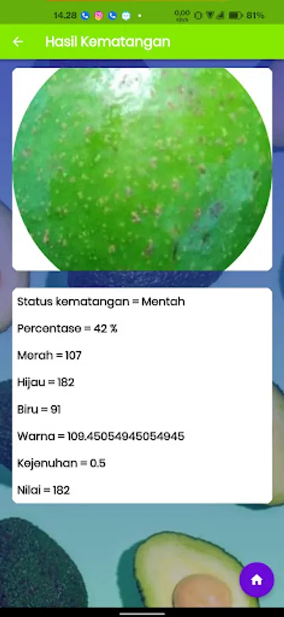 with this application users are expected to know the level of maturity of avocado butter with ripe, unripe, almost ripe and rotten results.