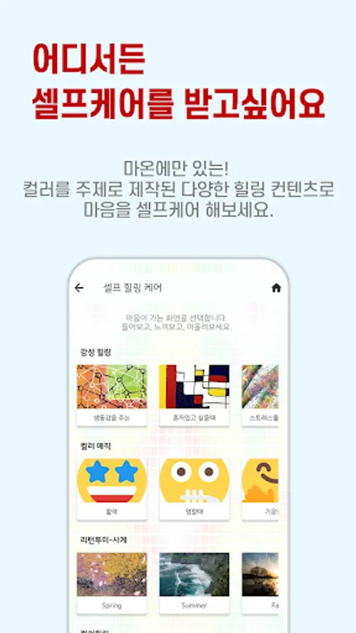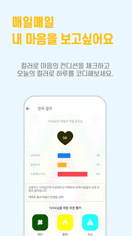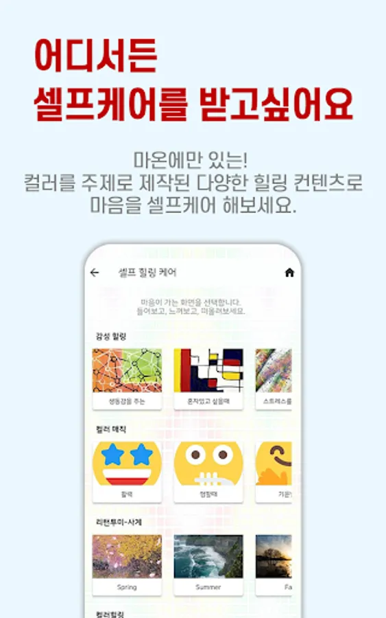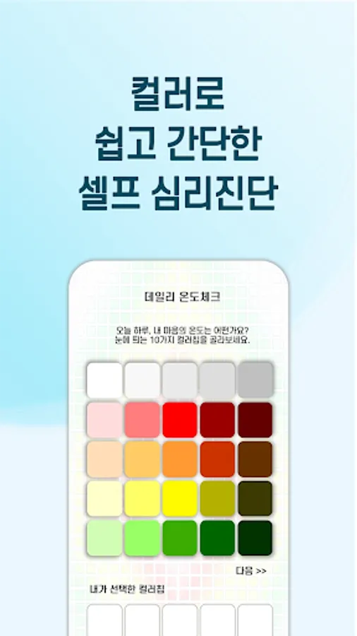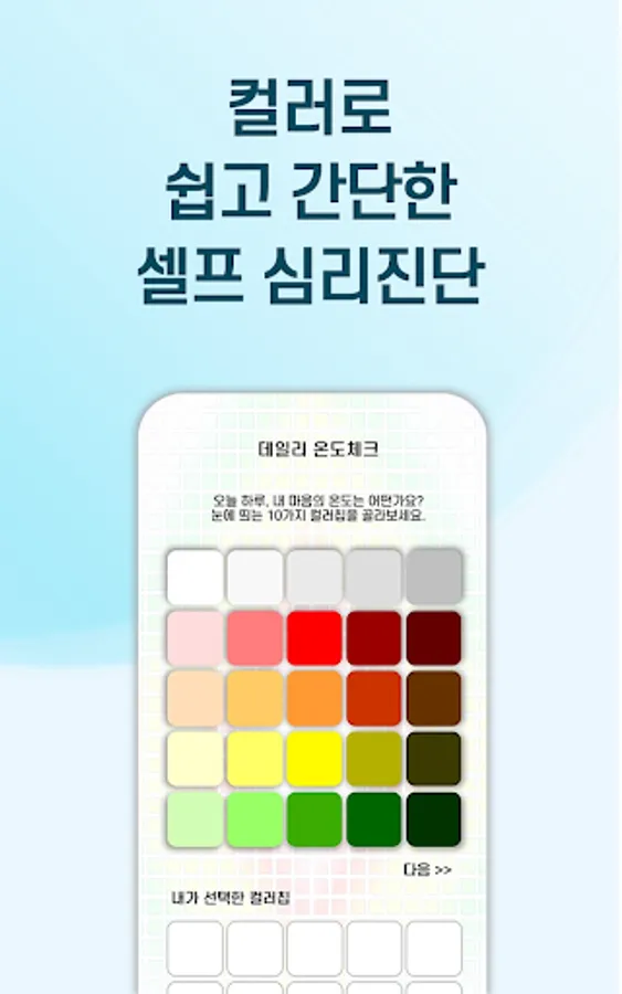 It is a digital self-mental care app using color psychology contents that anyone can easily and funly access.