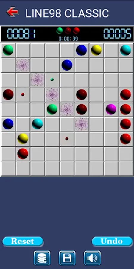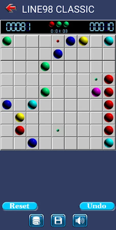 Lines 98 Classic Game has very simple rule. On a 9x9 board, there are some color balls. They have different colors: Red, Green, Blue, Yellow, Dark Red, Pink. Some balls are smaller than the others. And only 3 small color balls appear on screen at the same time. User can move the big ball by drag or touch on the ball then touch on the destination.