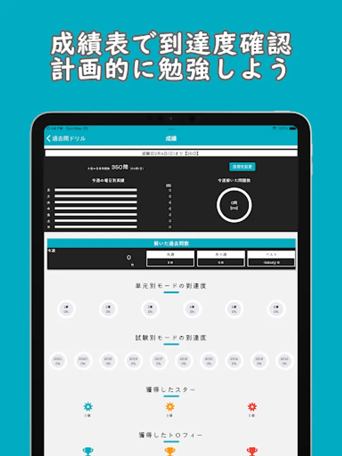 ・ By setting a goal for the number of questions you want to study in a week, you can continue systematically.