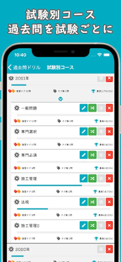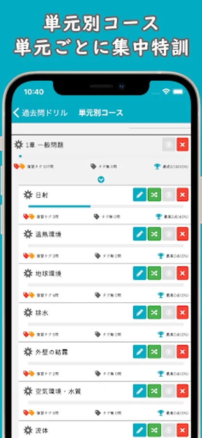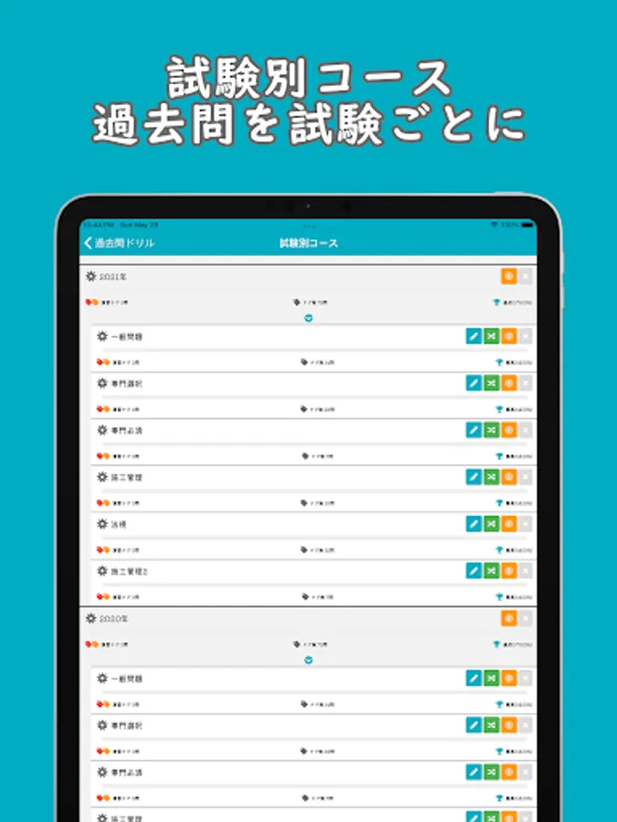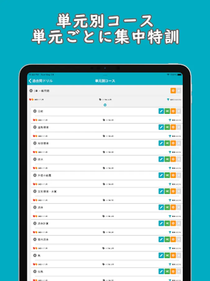 ・ "Unit-specific course" allows you to solve past problems by dividing them into units. You can definitely deepen your understanding by solving similar problems such as computational problems and legal problems.