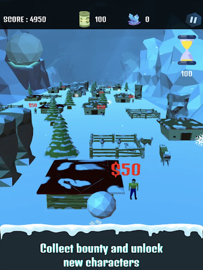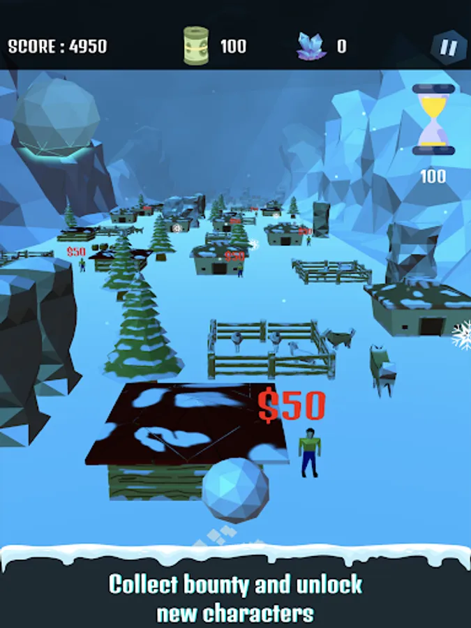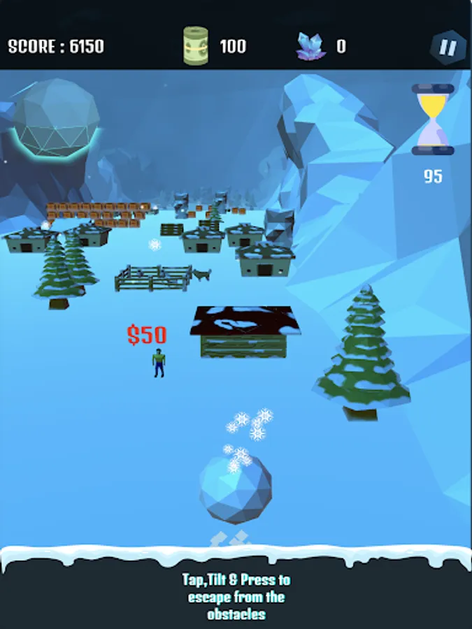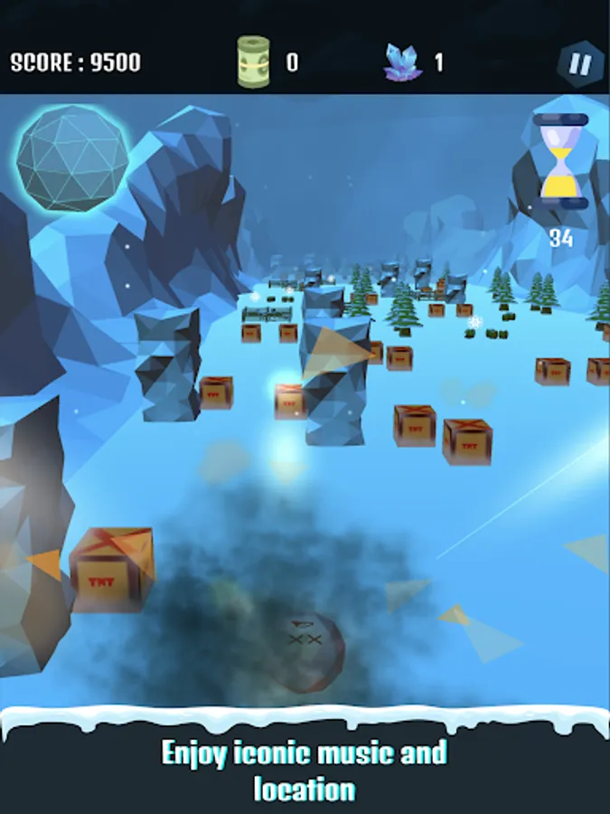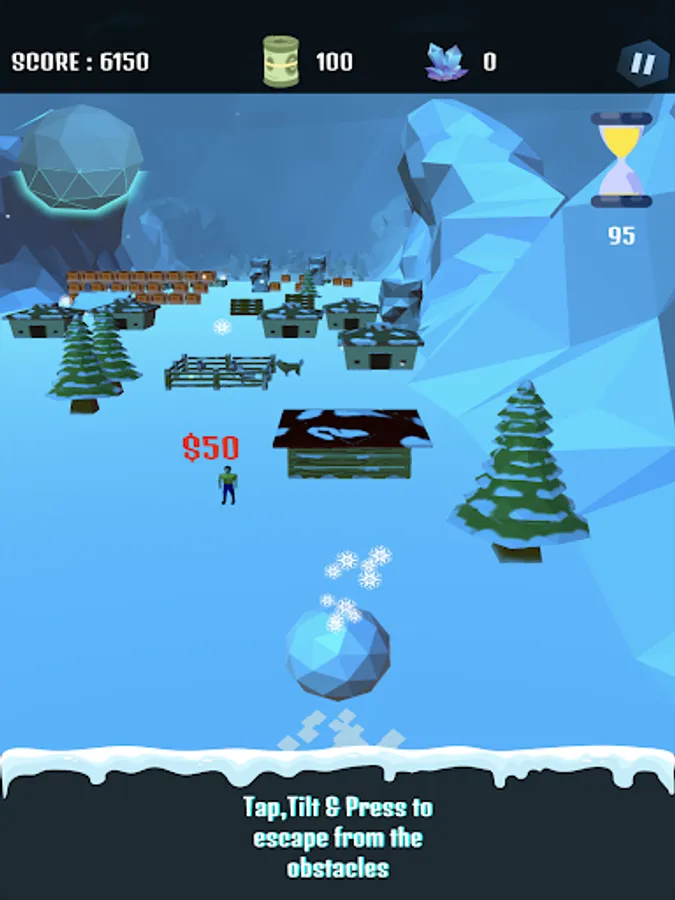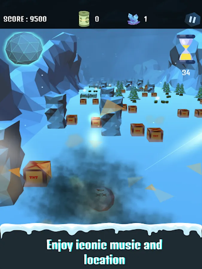 The Monster King is getting older and he is confused about choosing the next king after him. He decides to keep a contest between his sons. The Monster King promises that the new king of Monsters will be the one who collects the most bounty by smashing the targets, and now you have to collect the bounty by smashing the things which come your way. Test your reflexes as you roll down in the snow. Avoid being destroyed by rocks, bombs, houses and walls along sheer cliffs in the SNOW WORLD. Tap, Press and Tilt to avoid obstacles, collect bounty by hitting the target objects and destroying the objects.