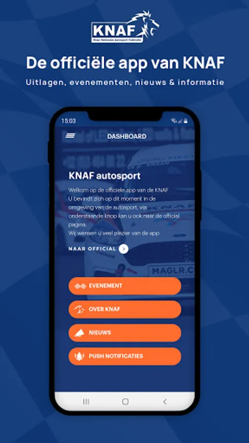 This is the only official app of the KNAF (Knac National Autosport Federation). The KNAF is the umbrella organization that stands for sporty and safe karting and car racing in the Netherlands. The KNAF is therefore recognized by the FIA and the NOC * NSF as an umbrella organization in the Netherlands.