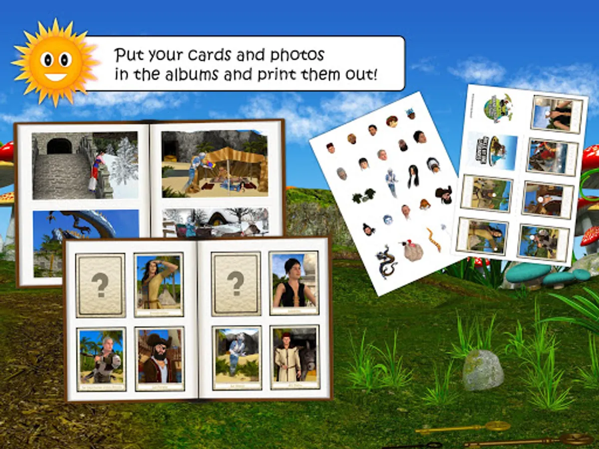 - Card album: all the cards unlocked during the game with the option of printing the album for a folding/collage game.