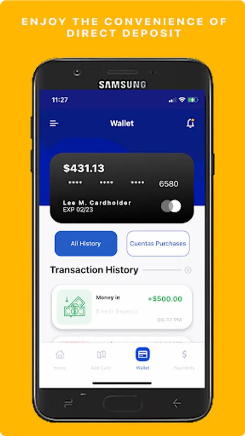 The Cuentas Prepaid Mastercard® is a mobile app that lets you manage your money on the go. With features like no credit check and no fee direct deposit, you can check your balance at any time to stay in control of your money. Transfer money to another Cuentas cardholder for free, receive your direct deposit up to 2 days earlier, conveniently make online purchases, pay for groceries, and pay your bills. The Cuentas Prepaid Mastercard® funds are FDIC insured and can be used wherever debit Mastercard® is accepted.