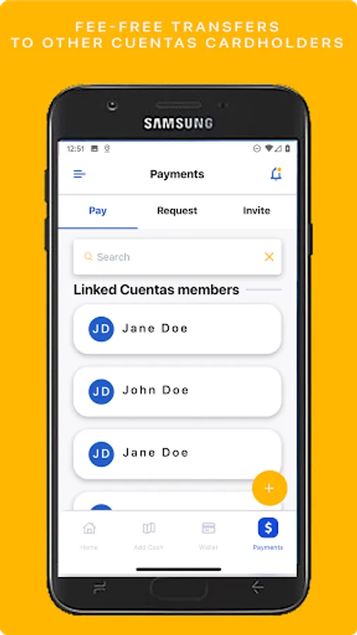 • Fee Free transfer of funds from Cuentas cardholders to Cuentas cardholders