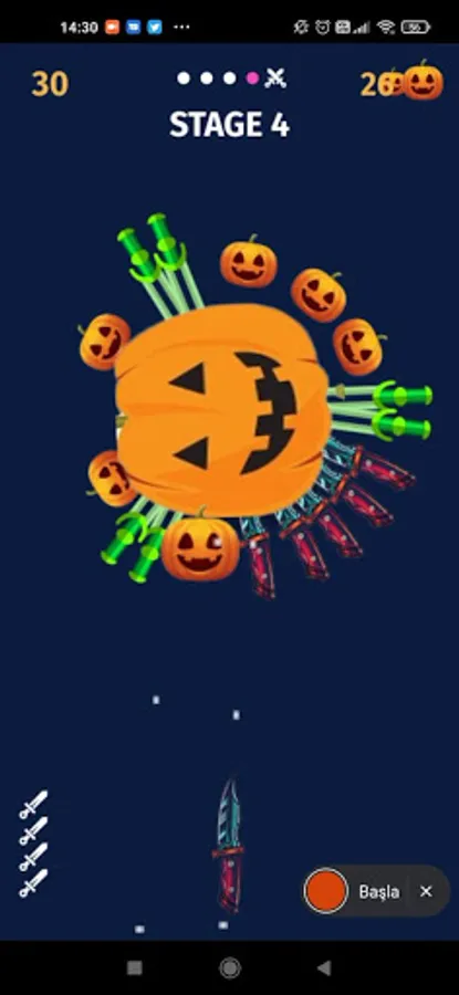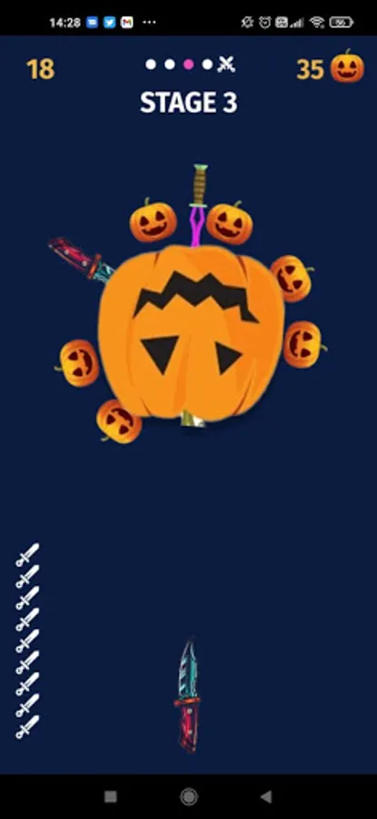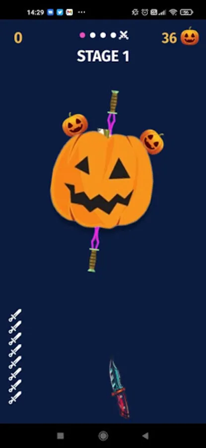 You can show your skills and reflexes by having fun in this game which is prepared with a special concept for Halloween. Your goal is to collect pumpkins and fight the boss to open new knives, defeat the boss and increase your knife collection.