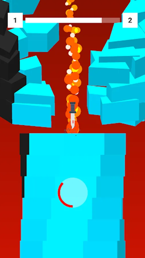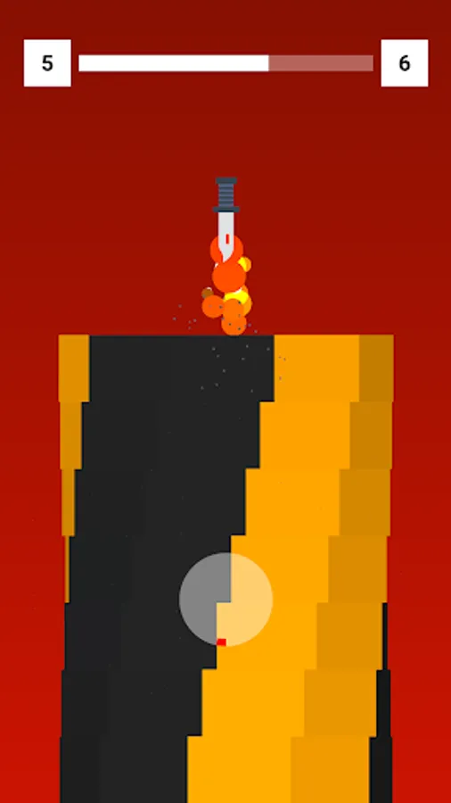 Smash your knife through the colorful tower. Tap the screen as the knife drops on the colored block but be careful not to hit the black blocks.