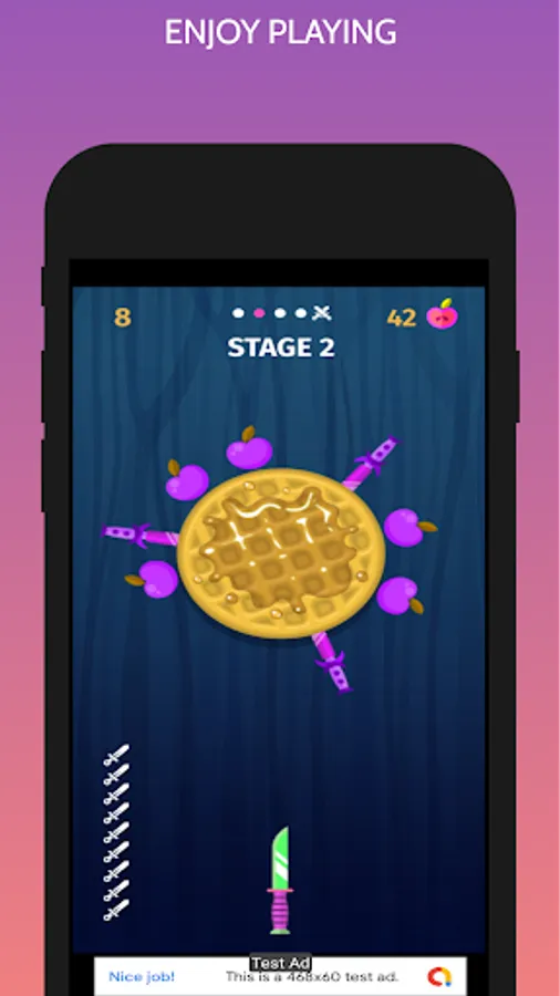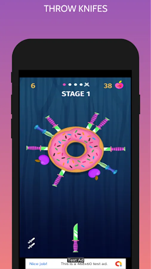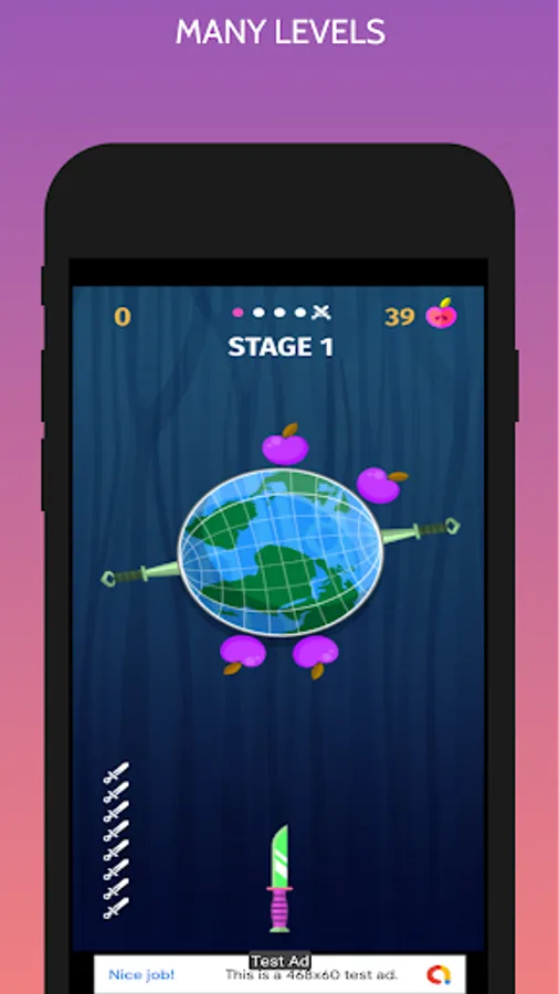 ✅ How T Play The Game: Each Level Has a number of knives that you need to throw at the rolling object, if you have success throwing all knives you have without hit the other knives you will pass and win and move to the second level.