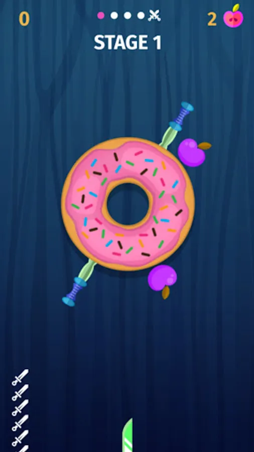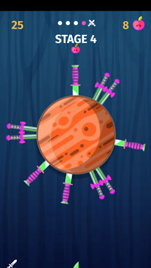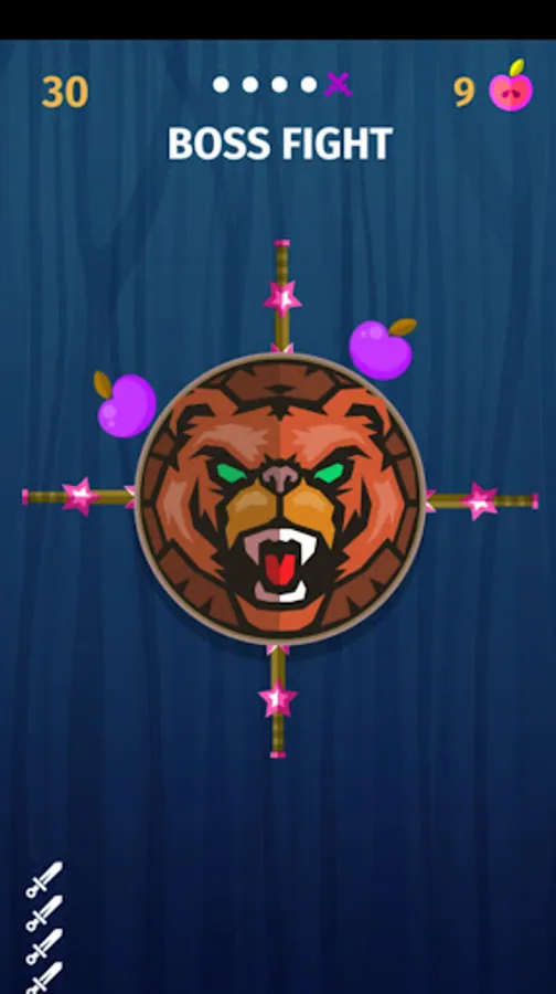 Throw the knives into the logs to break them. Slash the apples and unlock new knives. Each 5th stage is defended by a boss - beat them to get exclusive knives!