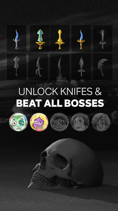 Knife Hits - Zombie Edition Game provides you the most attractive gameplay of knife hitting. Throw the knives into the logs to break them. Cut the objects and unlock new knives. After every 5th stage there is a boss to protect the challenge - beat them to get special knives , its same like old styled knife hit game.