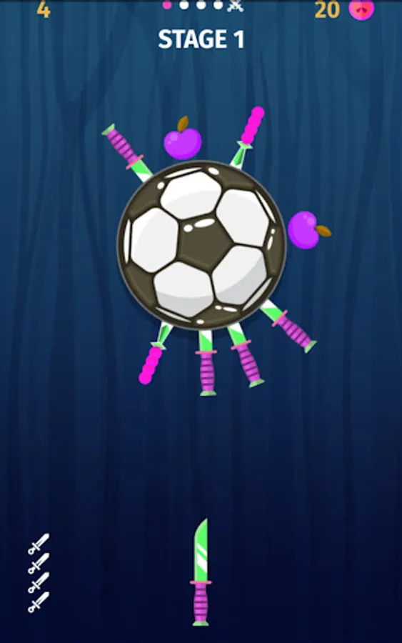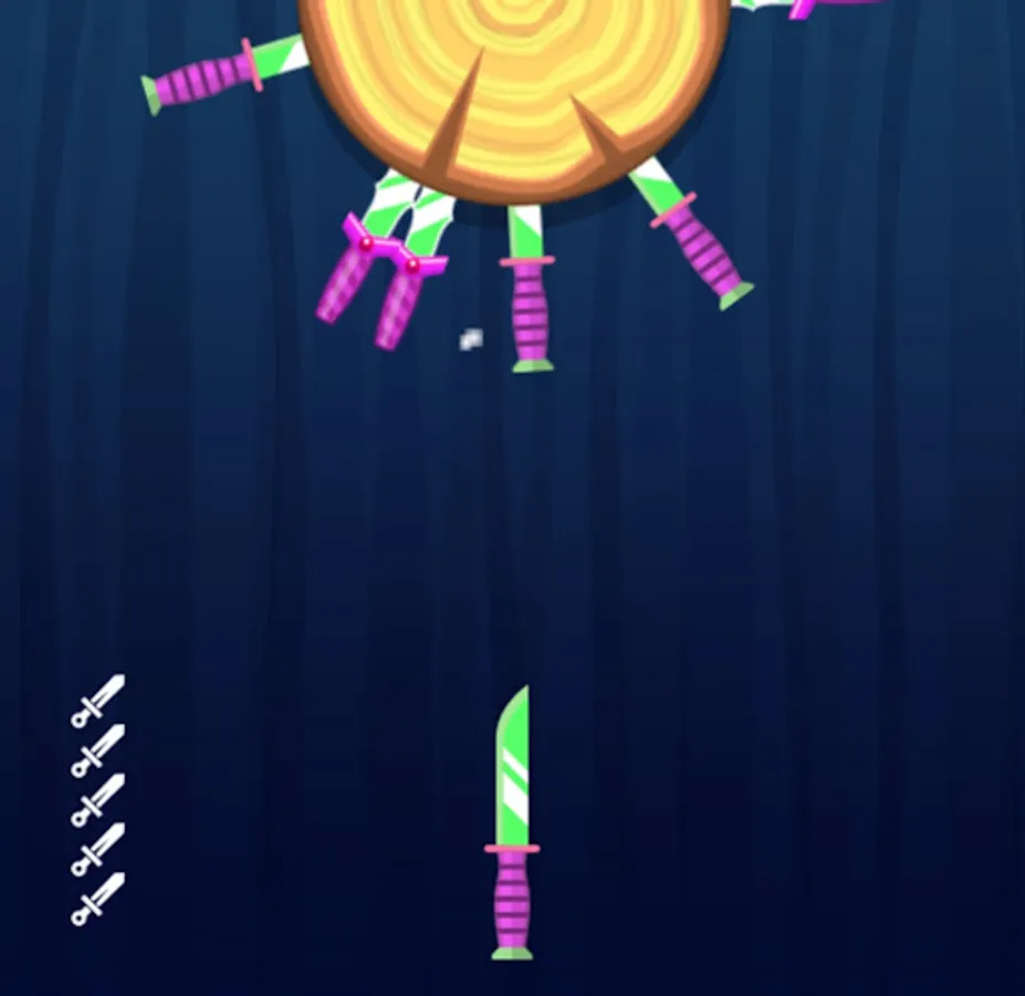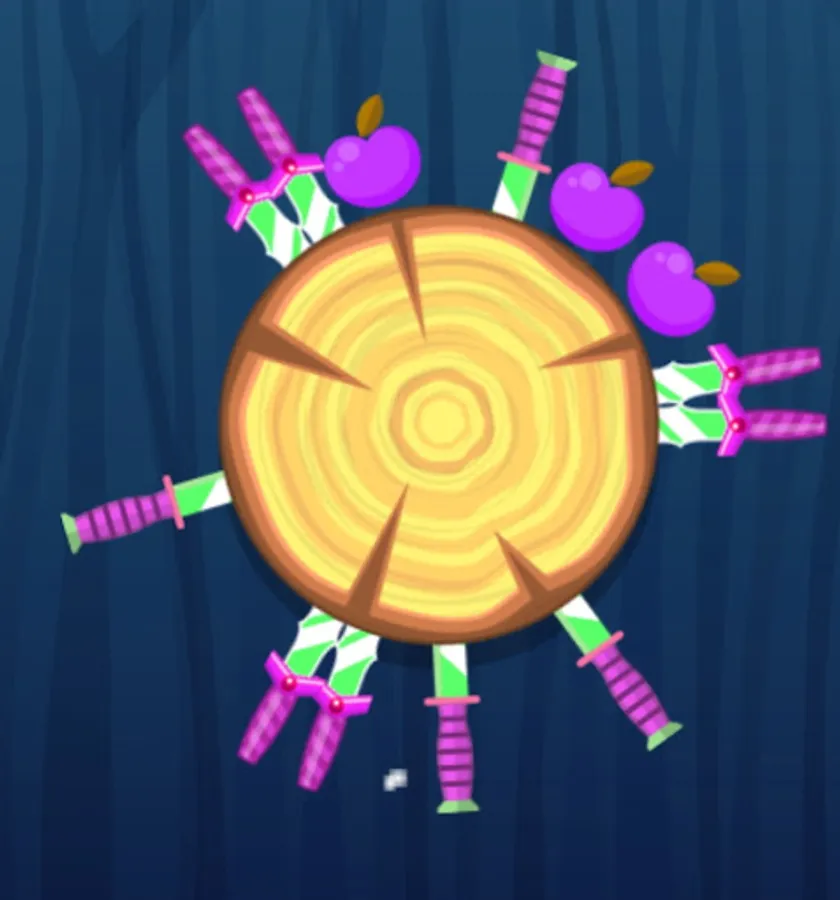 To shatter the logs, fling the knives at them. Cut the apples to reveal new knives. A boss guards each fifth step; defeat them to receive special knives!