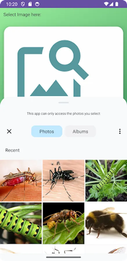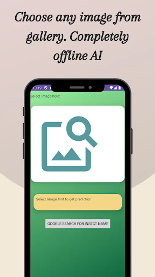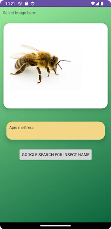 This app demonstrates the power of Artificial Intelligence and Machine learning by taking any image of a bug and tells you the name of the insect. Useful for budding zoologists or entomologists. Just take a snap of the bug and run this app. This app automatically tells the scientific name of the insect. Completely offline, and the image remains on your local storage