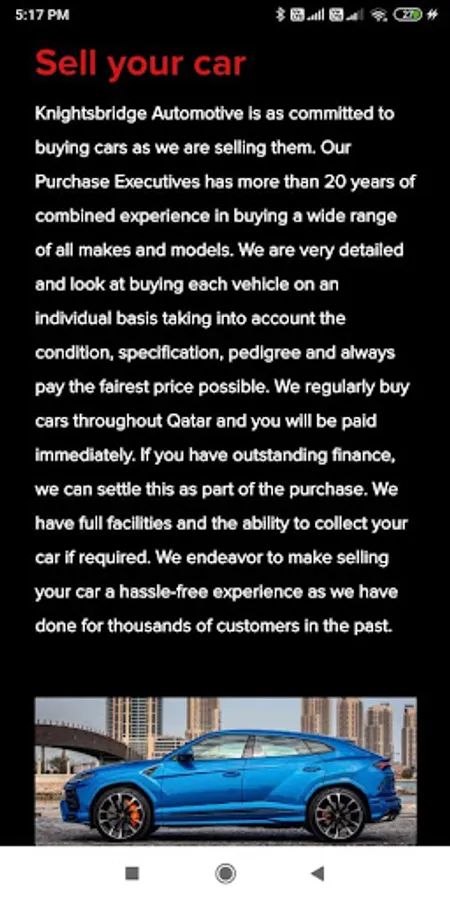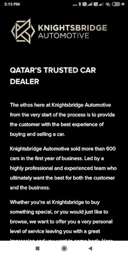 Whether you’re at Knightsbridge to buy something special, or you would just like to browse, we want to offer you a very personal level of service leaving you with a great impression and you want to come back. Here at Knightsbridge Automotive, we are very proud to have one of the largest independent facilities in Qatar, Selling and buying a wide range of cars and vehicles including prestige, 4×4 and sports, we guide each one of our customers through the entire process of buying, finance arrangements, servicing and selling ensuring a hassle-free experience for the customer.