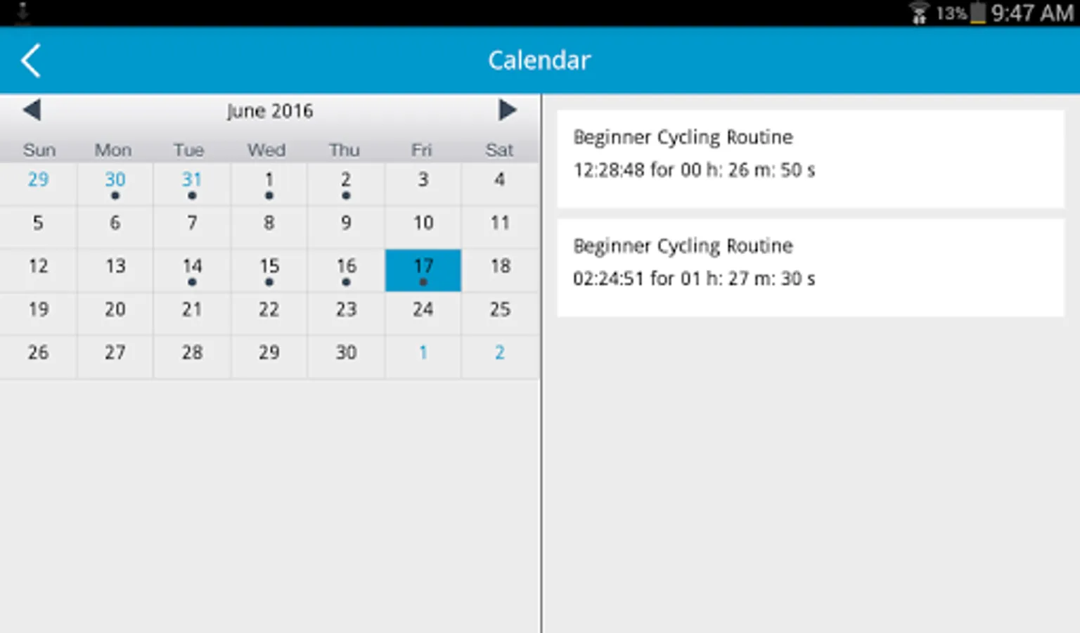 Our fitness apps provide simple and effective workouts that help users stay fit. Spintensity is one such app which has been designed for people who can't go out to the gym. We have provided three sample workouts with sessions and intervals that cover high intensity interval training. You can add your workouts and track your progress by adding your daily workout details to your calendar. You can enjoy music while you are working out and you can track your heartbeat using our MHR calculator. More features to suit your needs. Try our app now.