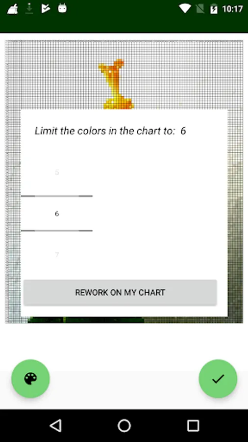 Change the brightness, contrast of the picture/photo, choose the no. of colors in the chart or resize the chart to your liking (three sizes are supported - Big, Small & XL).