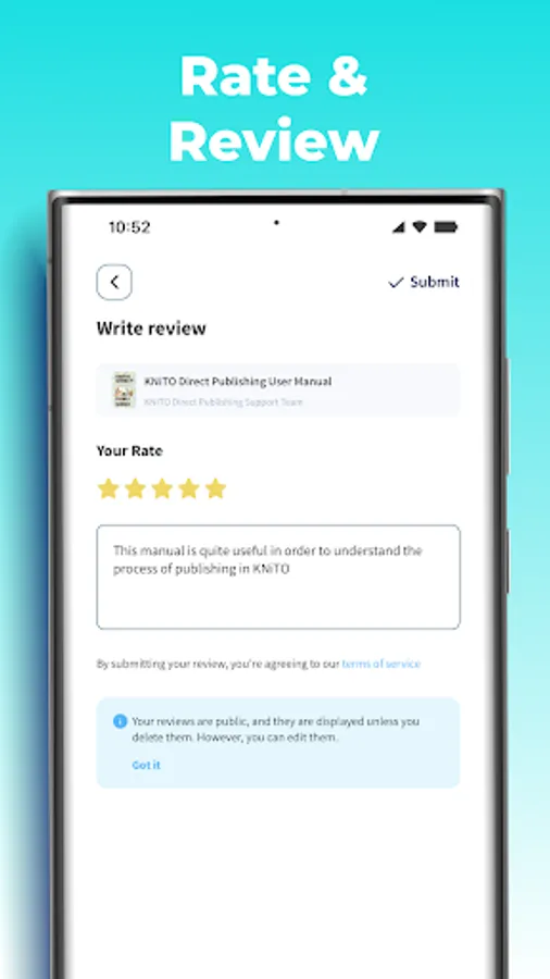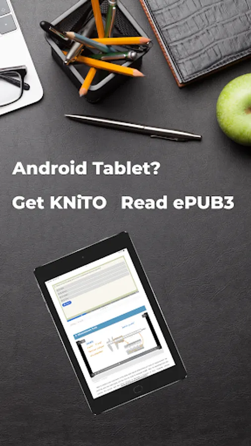 KNiTO is a modern ePUB3 book reader. ePUB3 is optimal for an immersive reading experience on mobile devices. It gives plenty of possibilities, including Audio, Video, Interactivity, Global Language Support, Reflowable and Fixed Layouts, Accessibility and much more. This has made it ideal for modern educational books, including K12 and university textbooks, monographs, training manuals, procedures books, and any content that can be conveyed better via ePUB3 elements.