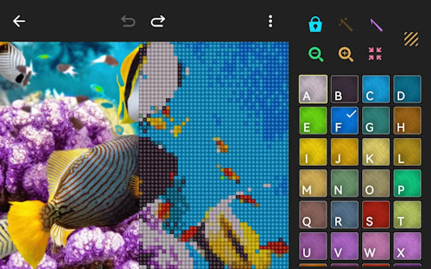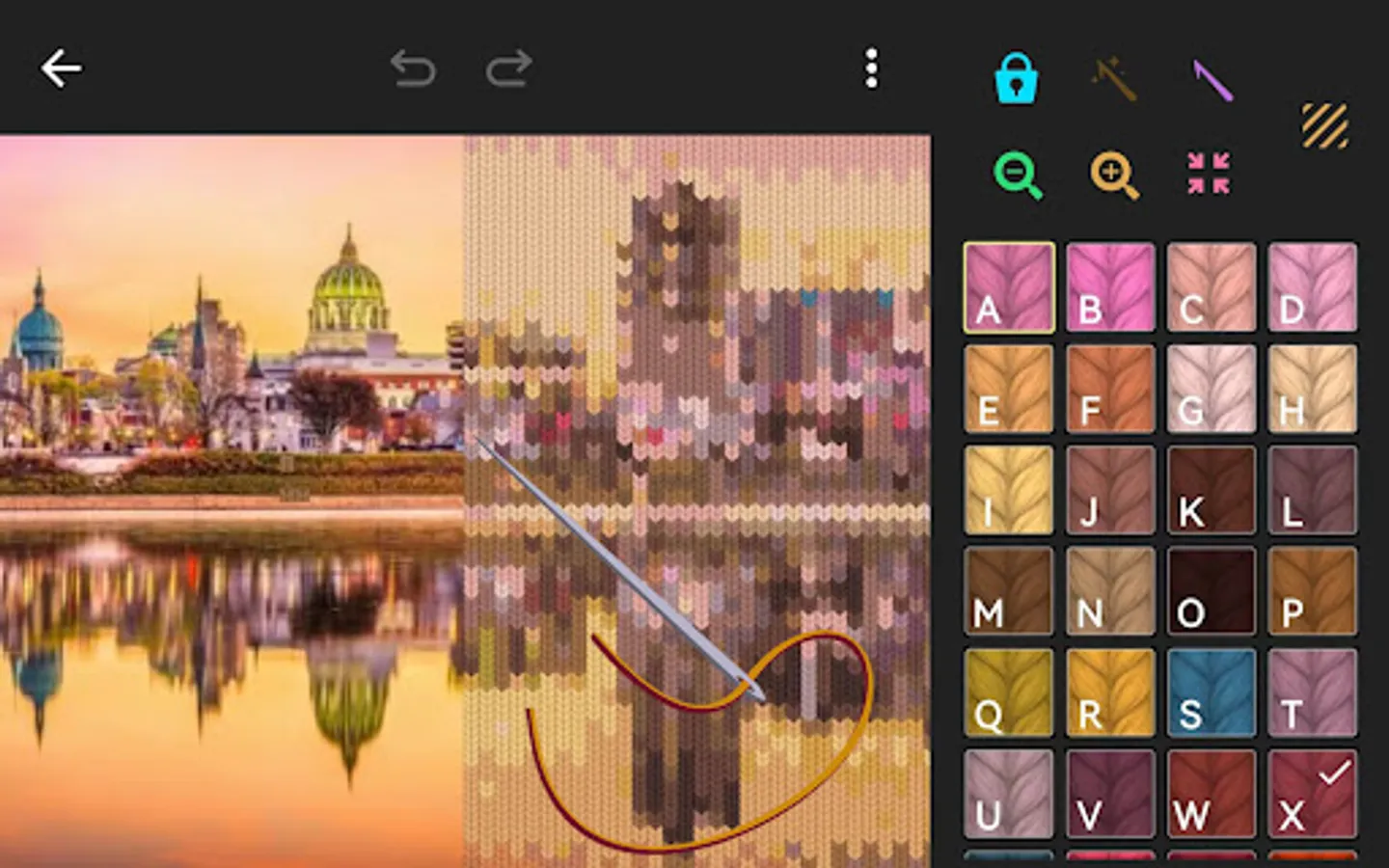 Cross Stitch comes with hundreds of beautiful photos and patterns to work with, select the color and tap to place stitches, color by letter, color by number, it is simple, relaxing and fun.