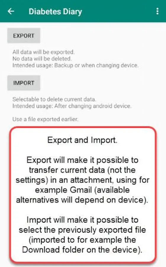 It is possible to edit previous data, to delete previous data and to export and import the data.