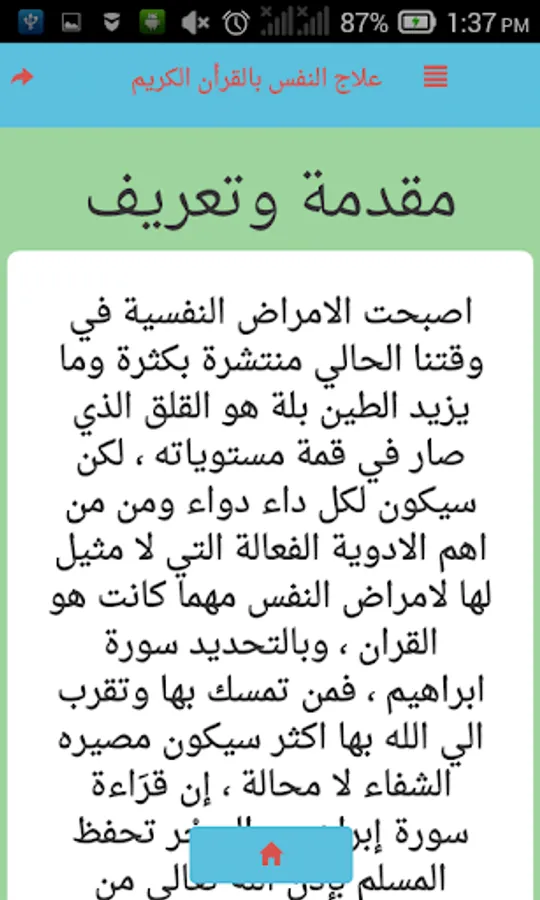 There is no difference between two Muslims that the Koran is a cure for what is published and what is meant is the problems and mental disorders in general, and through this application we offer you the best verses of the Koran for self-treatment, but you have only the best in reading and good faith and faith in its effectiveness first and finally, God willing, you will be treated from all mental disorders, my brother, that you admire the application does not forget the evaluation because you contribute to help Muslims and do not forget his participation also to learn the benefit.