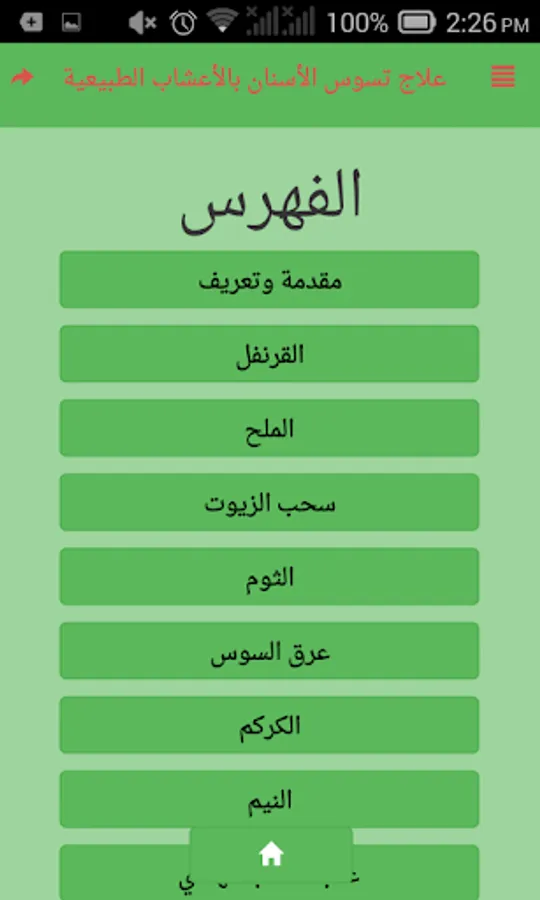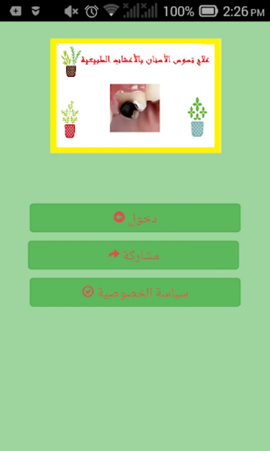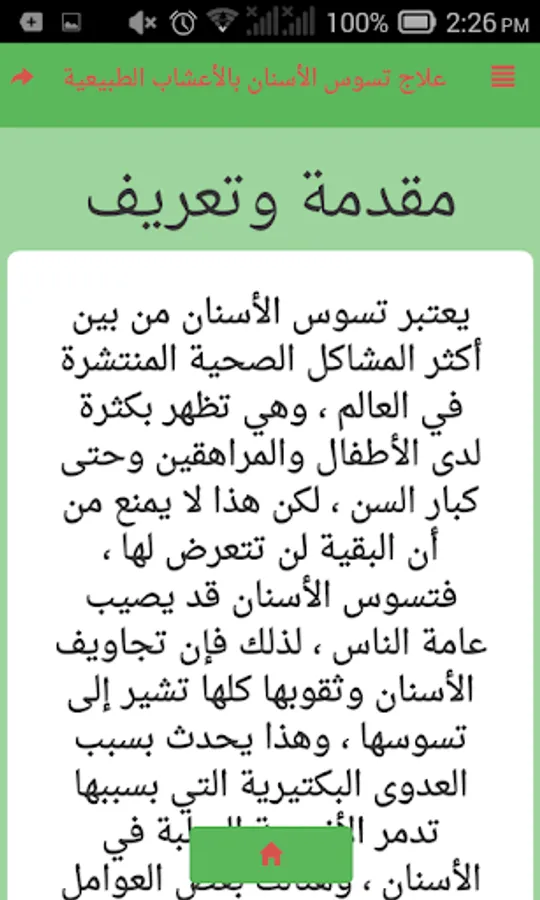 The problem of dental caries has become widespread in the Arab world, and many people suffer from it because of the pain that may occur and go to search for solutions and treatments, special home or natural ones, and through this application offer you the best natural herbs and home remedies for this purpose, for the purpose of healing Tooth decay, if you like the application can not be evaluated and shared with loved ones to be useful.