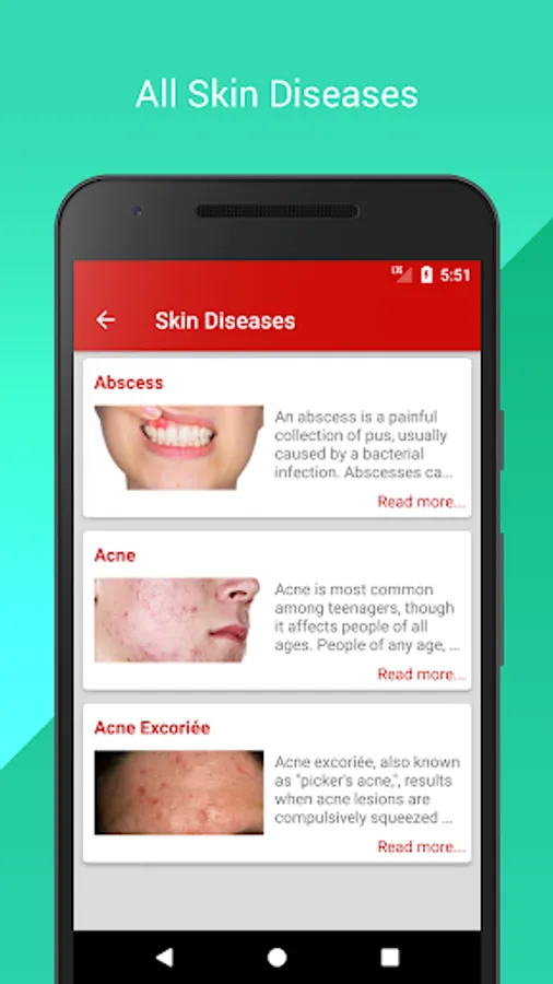 The Skin Doctor app provides a comprehensive guide on skin diseases, including signs, causes, treatments, and prevention. With well-described images of each disease, it's possible to identify the condition. The app offers helpful information on various skin conditions, but consulting a medical professional is necessary for accurate diagnosis and treatment.