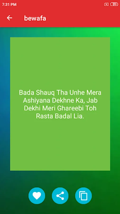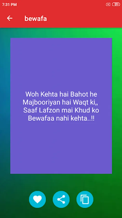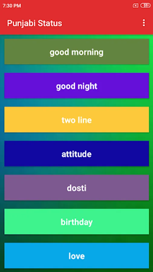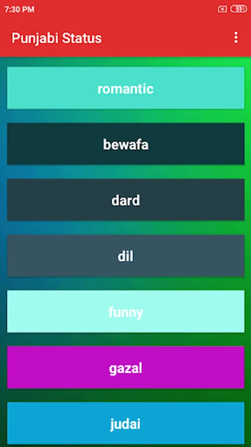 this application different Collection of Punjabi status and shayari like love shayari, romantic shayari, using this application you share wia all social media like whatsapp, facebook, gmail, message, etc.