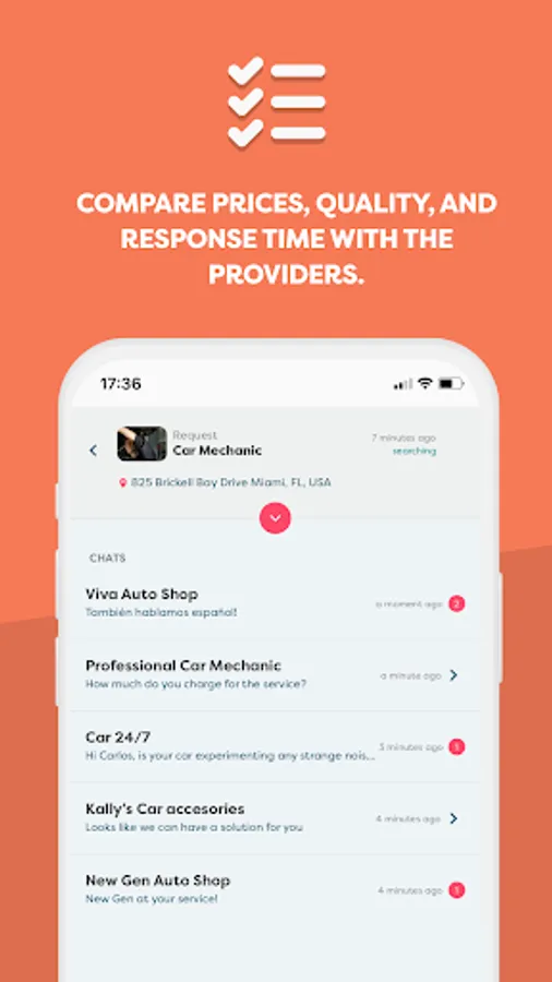 With our match algorithm, we can quickly search and match both parties, while providing a simple interface and an even simpler way to communicate between customers and service professionals.