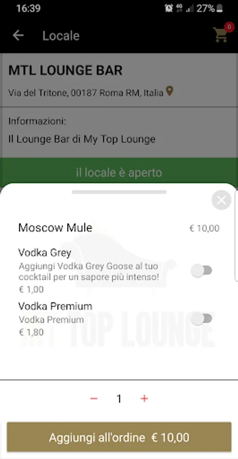Thanks to My Top Lounge you can eliminate the problem of queuing in clubs, cocktail bars and, in general, in all those occasions when it is difficult to consume food and drinks (concerts, bathing establishments, discos, etc.).