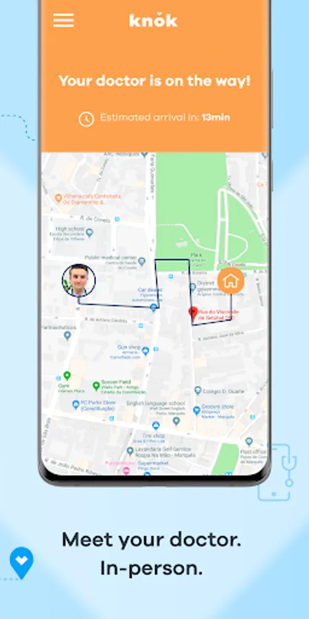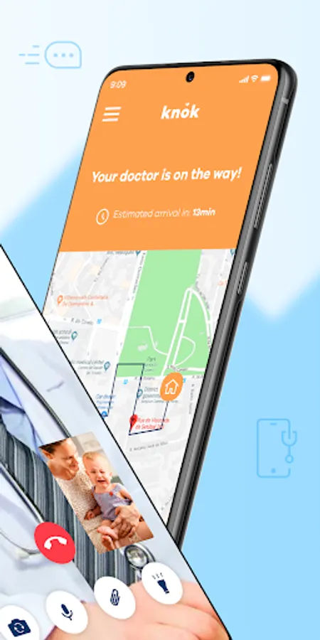 KNOK leads to recovery. Connects you in real time with specialist doctors that will come to you, wherever you are (home, office, ...) at any time.