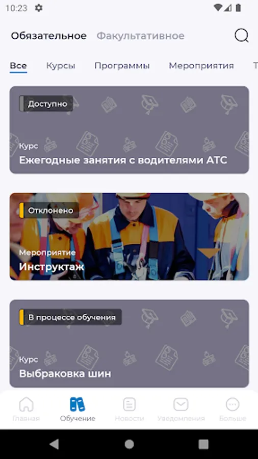 The mobile application is specially designed for in-house employee training. With it, the employee will never forget where and how face-to-face training events will be held, and the assigned distance online courses will always be at hand at any available time.